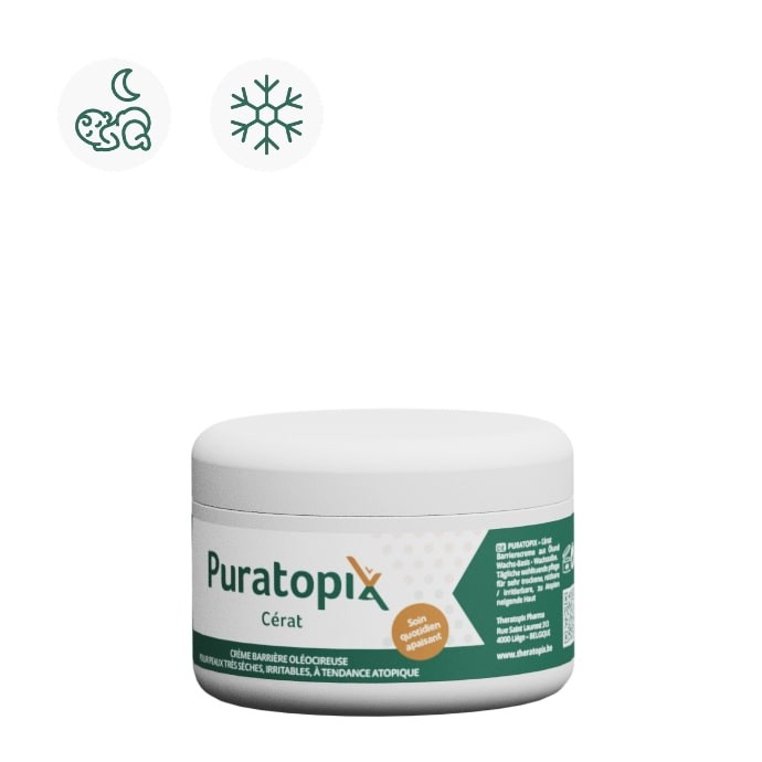 PURATOPIX Cérat is een barrièrecrème op basis van olie met een rijke, romige textuur. PURATOPIX Cérat is de ideale beschermende verzorging voor peuters of mensen met een huid die bijzonder beschadigd is door winterse omstandigheden of externe agressoren.