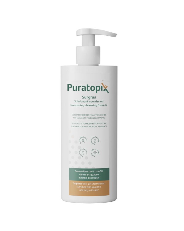 PURATOPIX SURGRAS is een wascrème met een vergelijkbaar samenstelling als WASMOUSSE, maar verrijkt met een oliefase. Deze wascrème is ideaal voor een verzachtende dagelijkse reiniging van de gevoelige, zeer droge, geïrriteerde huid en huid met een neiging tot atopie. Door de toevoeging van squalaan, polysynlaan en vetzuuresters krijgt dit wasproduct een extra voedend en beschermend karakter